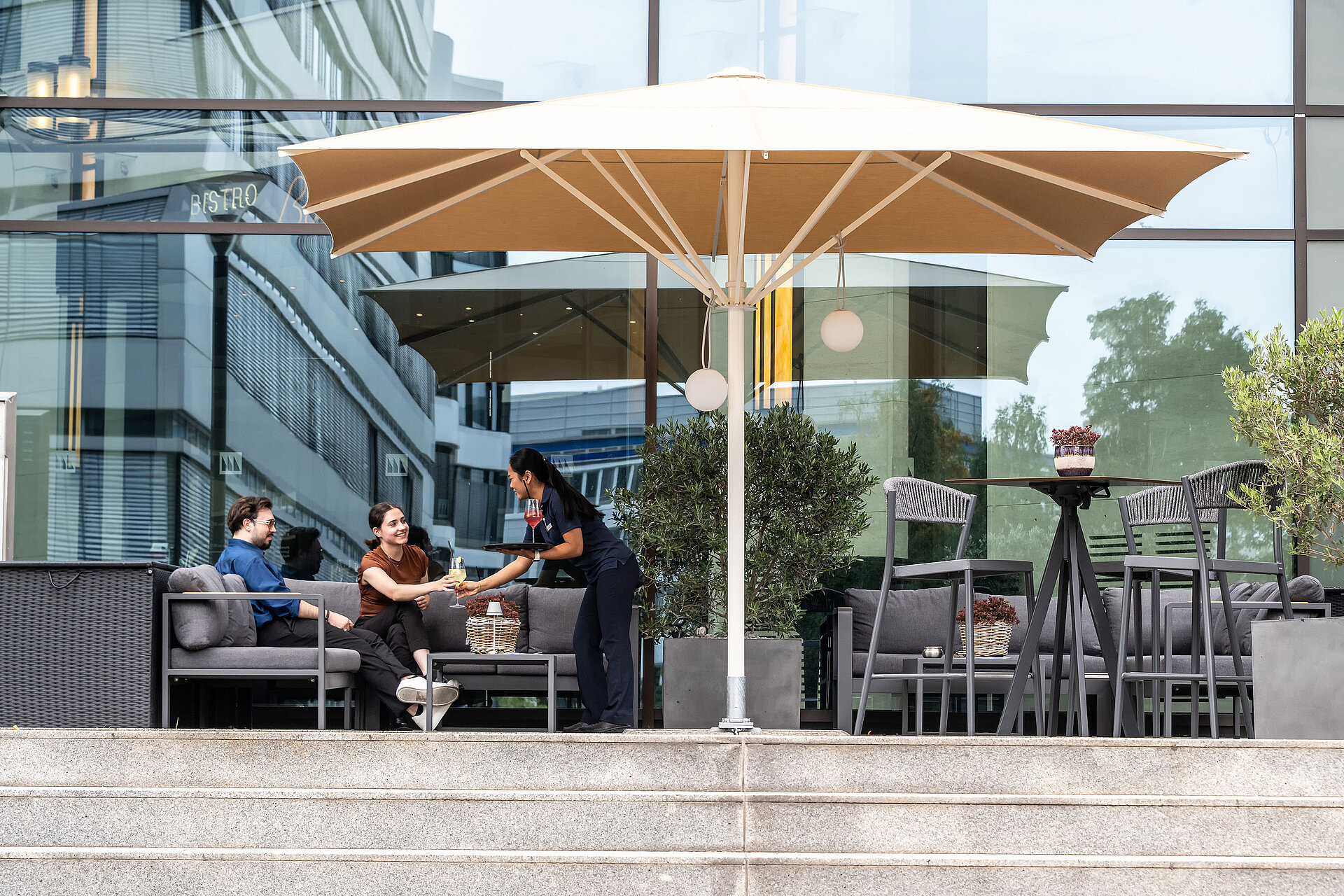 Kaffee, Tee, Softdrinks und leckere Snacks reichen wir Ihnen in unserer Lounge in der Hotelhalle. Durch die ideale Lage der Lounge ist sie perfekt für einen kurzen Stopp während der Durchreise – genießen Sie hier entspannt einen kleinen Snack oder Drink, bevor es weitergeht.