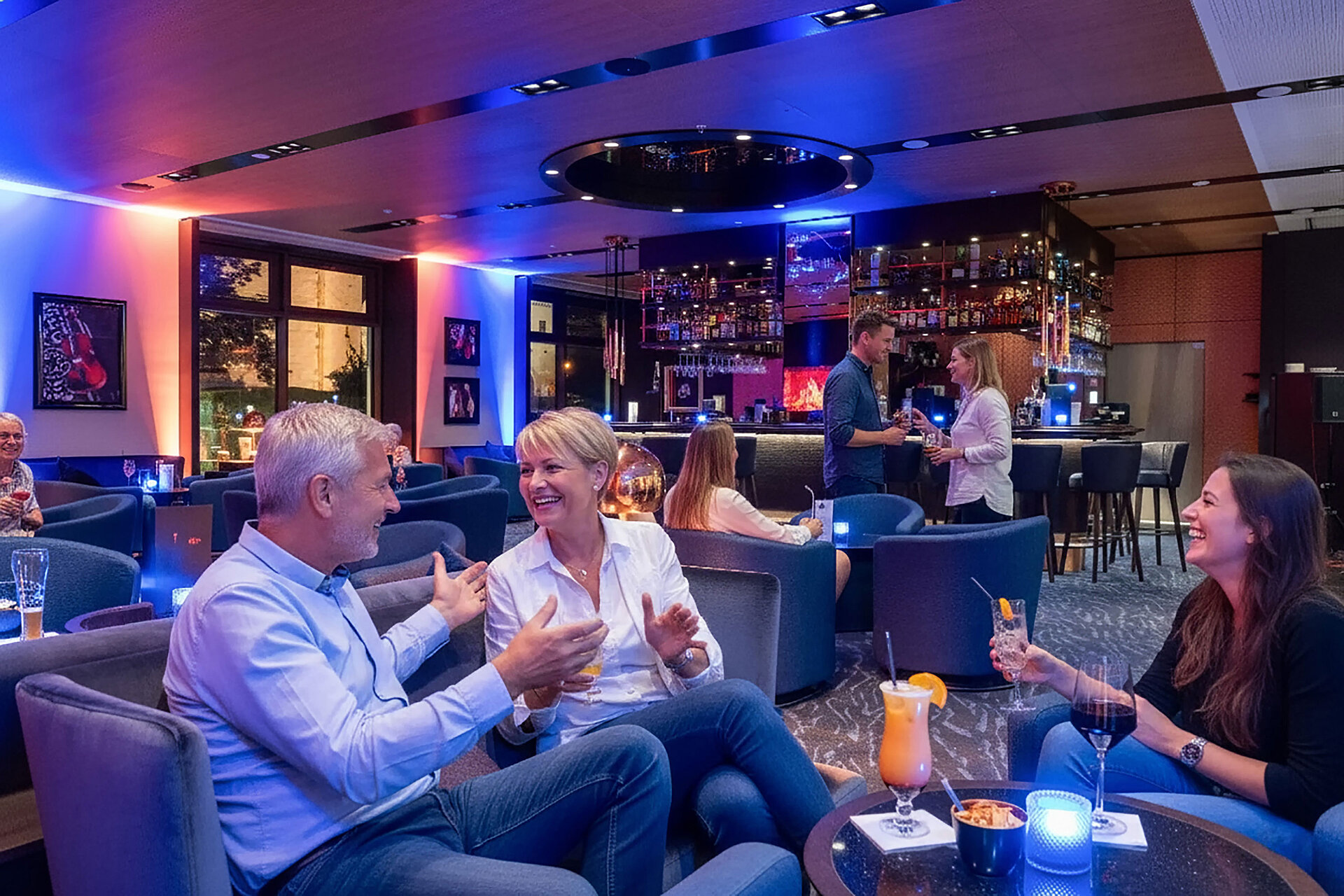 Lassen Sie Ihren Tag bei kreativen Cocktails oder einem frisch gezapften bayerischen Bier ausklingen. Lauschen Sie der Live-Pianomusik und genießen Sie Ihren Feierabend in angenehmer Atmosphäre. Ein reichhaltiges Angebot an Weinen und Spirituosen sowie eine Bistro-Karte steht ebenfalls zur Auswahl.