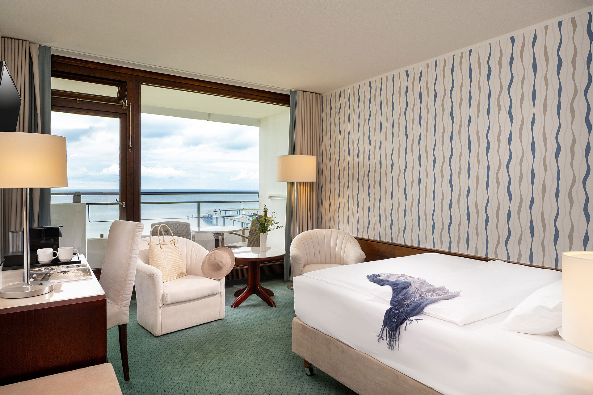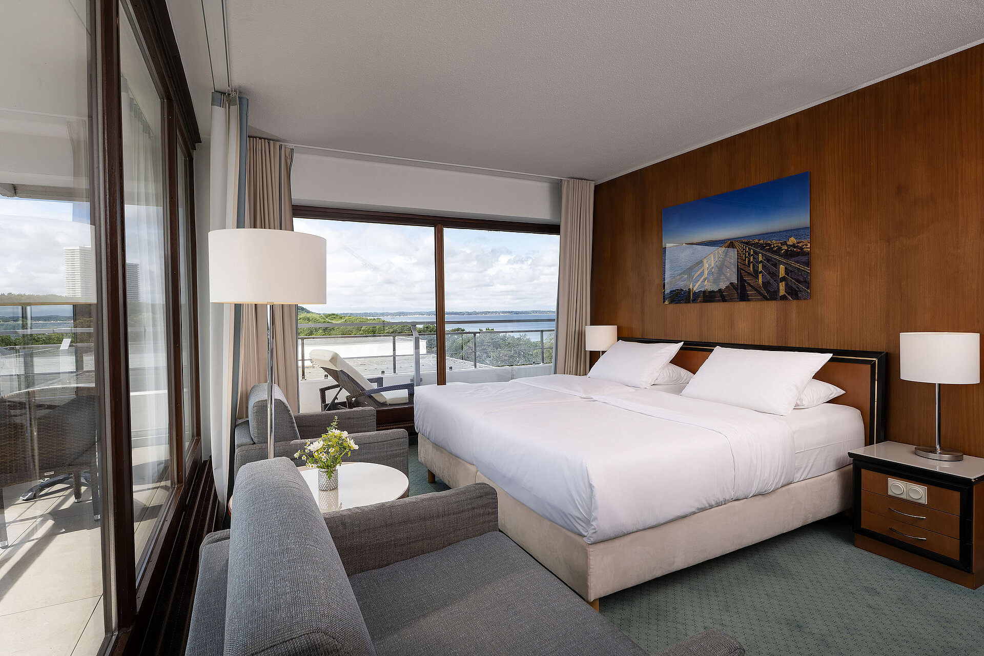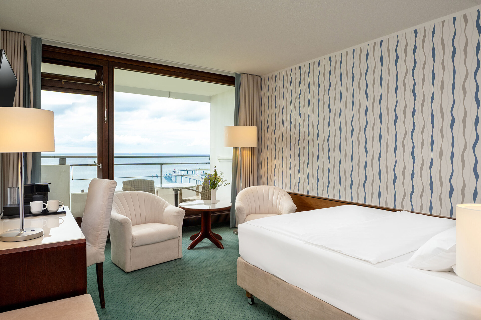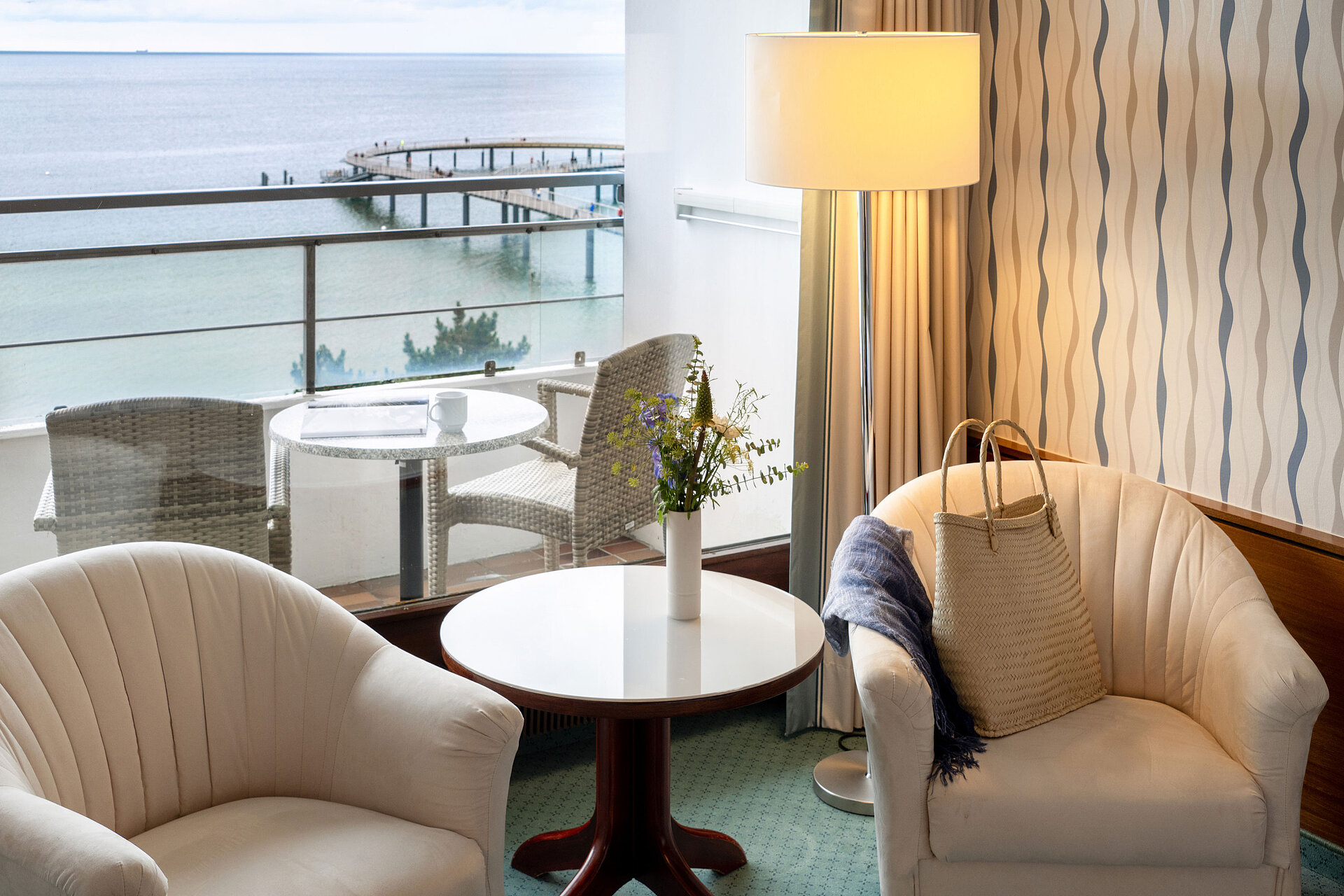 Näher kann man der Ostsee von einem Hotelzimmer aus nicht kommen, als vom Maritim Seehotel Timmendorfer Strand. Kein langes Laufen vom Strand bis zum Zimmer. Nach dem Badevergnügen im Meer oder den hoteleigenen Meerwasserpools mal eben unter die Dusche im eigenen Refugium huschen, ist da kein Problem. Wer Wert darauf legt, kann ab der Superior Kategorie sein Zimmer mit direktem Meerblick buchen. Und wenn wir Meerblick schreiben, dann meinen wir das auch so. Sie sitzen von Ihrem Balkon aus garantiert in erster Reihe und haben das Treiben am Strand im Blick. Aber auch bei den Zimmern zur Kurparkseite gibt es viel zu Sehen und zu Beobachten. Neben fantastischer Aussicht haben wir natürlich noch mehr im petto, was Sie in den ausführlichen Zimmerbeschreibungen unten nachlesen können. Zum Portfolio gehören auch Zimmer mit Verbindungstüren für alle die zu zweit anreisen, aber alleine schlafen möchten. Diese befinden sich auf der Kurparkseite auf den Etagen 2, 4, 6 und 8 und auf der Seeseite auf den Etagen 3, 5, 7 und 9.