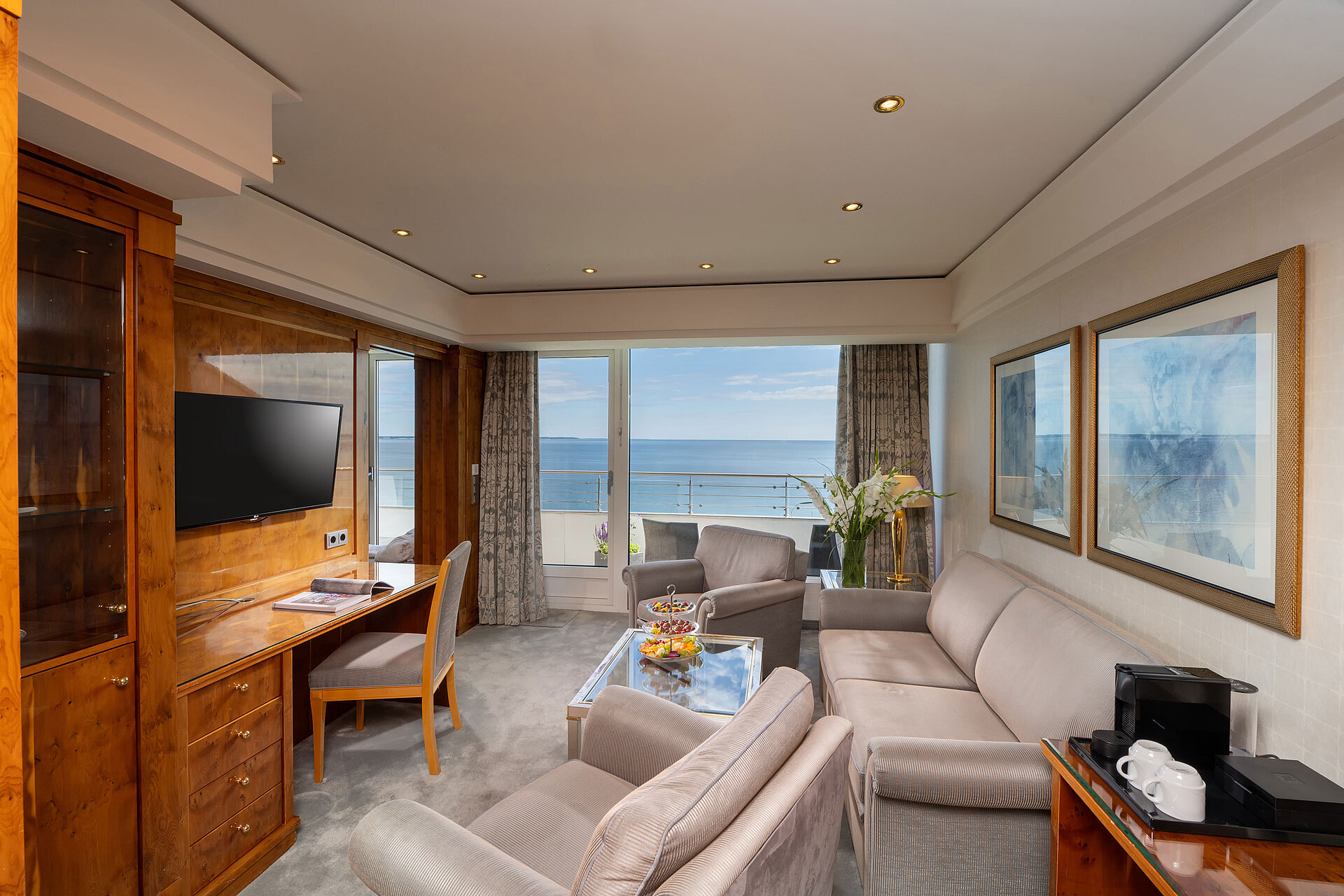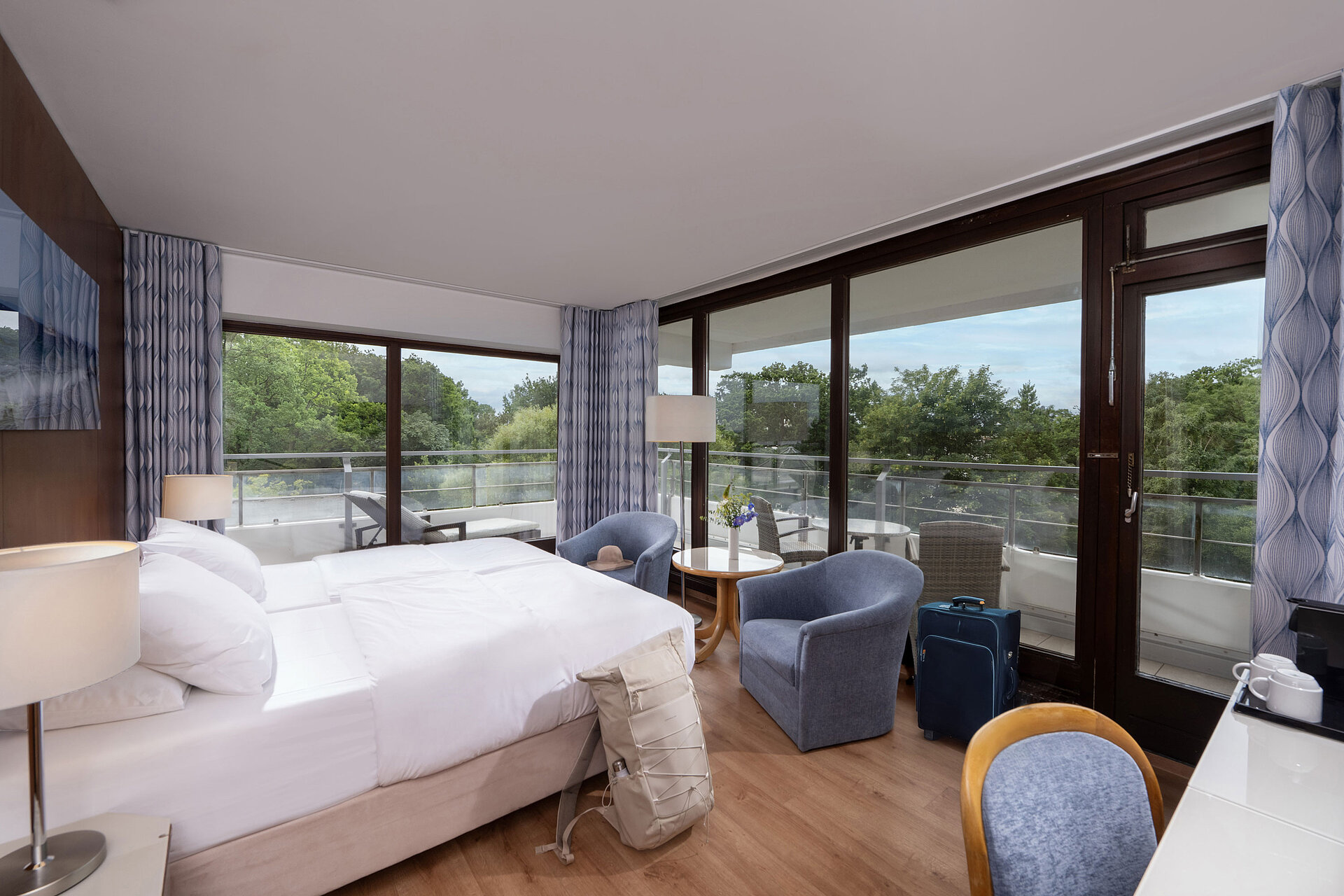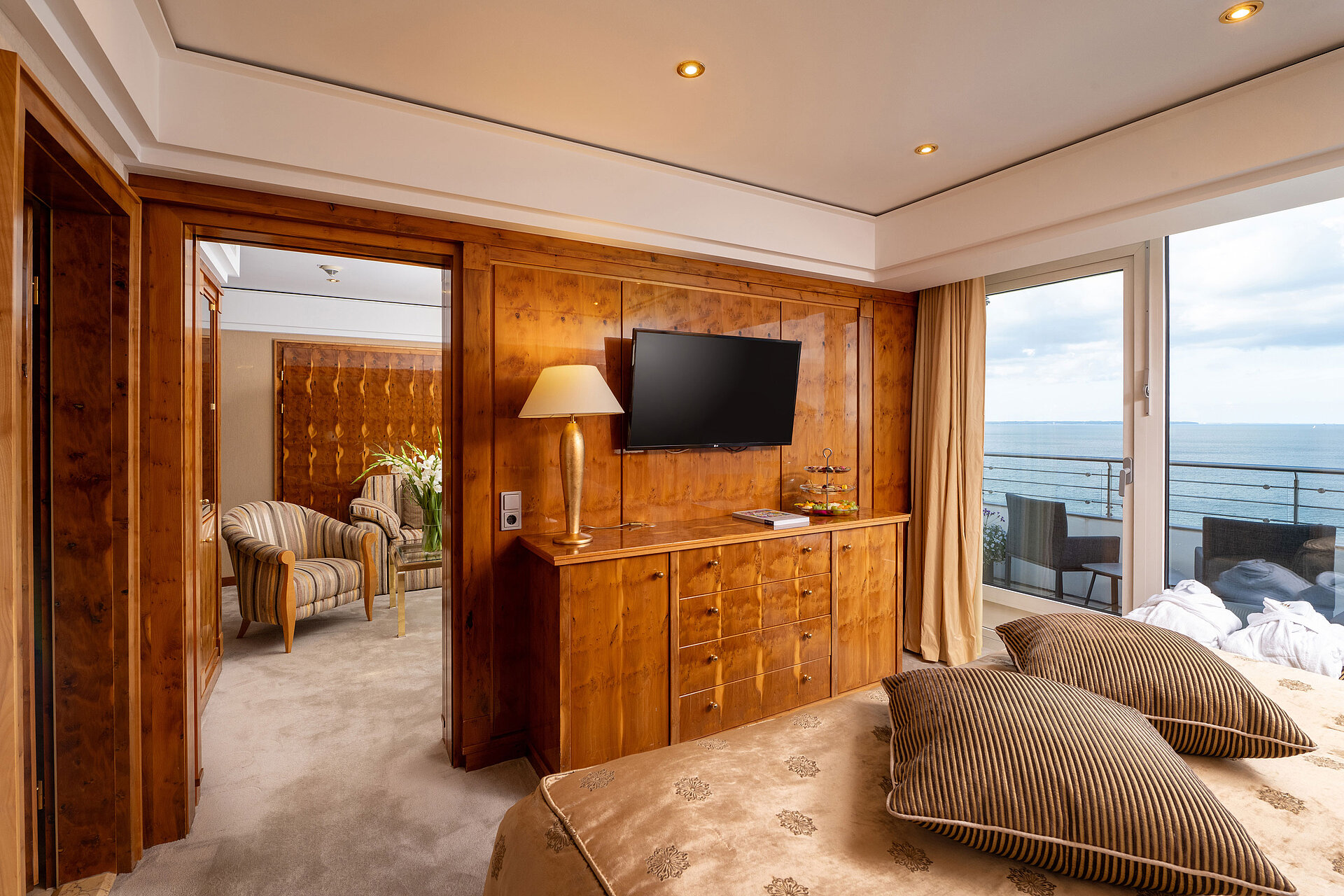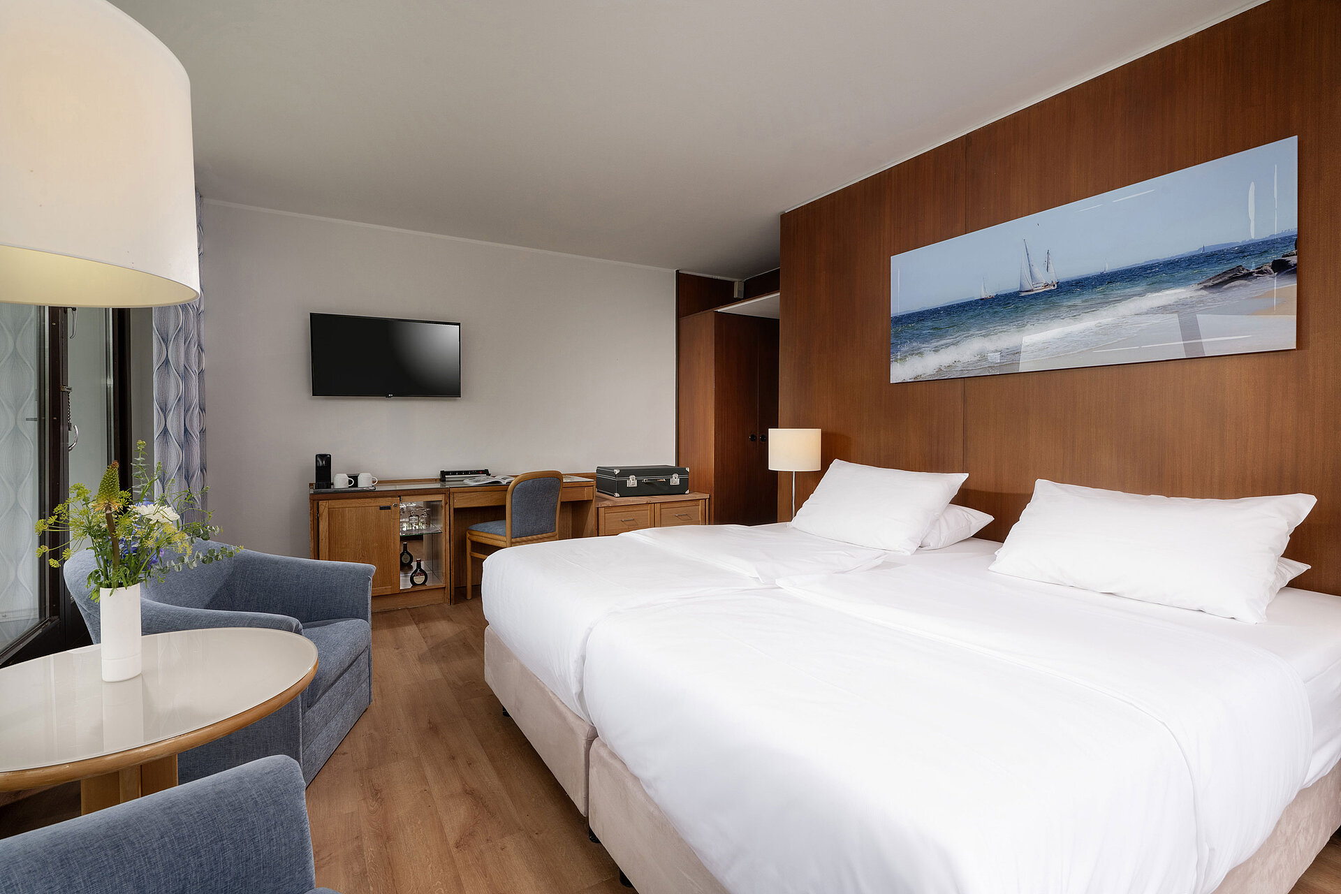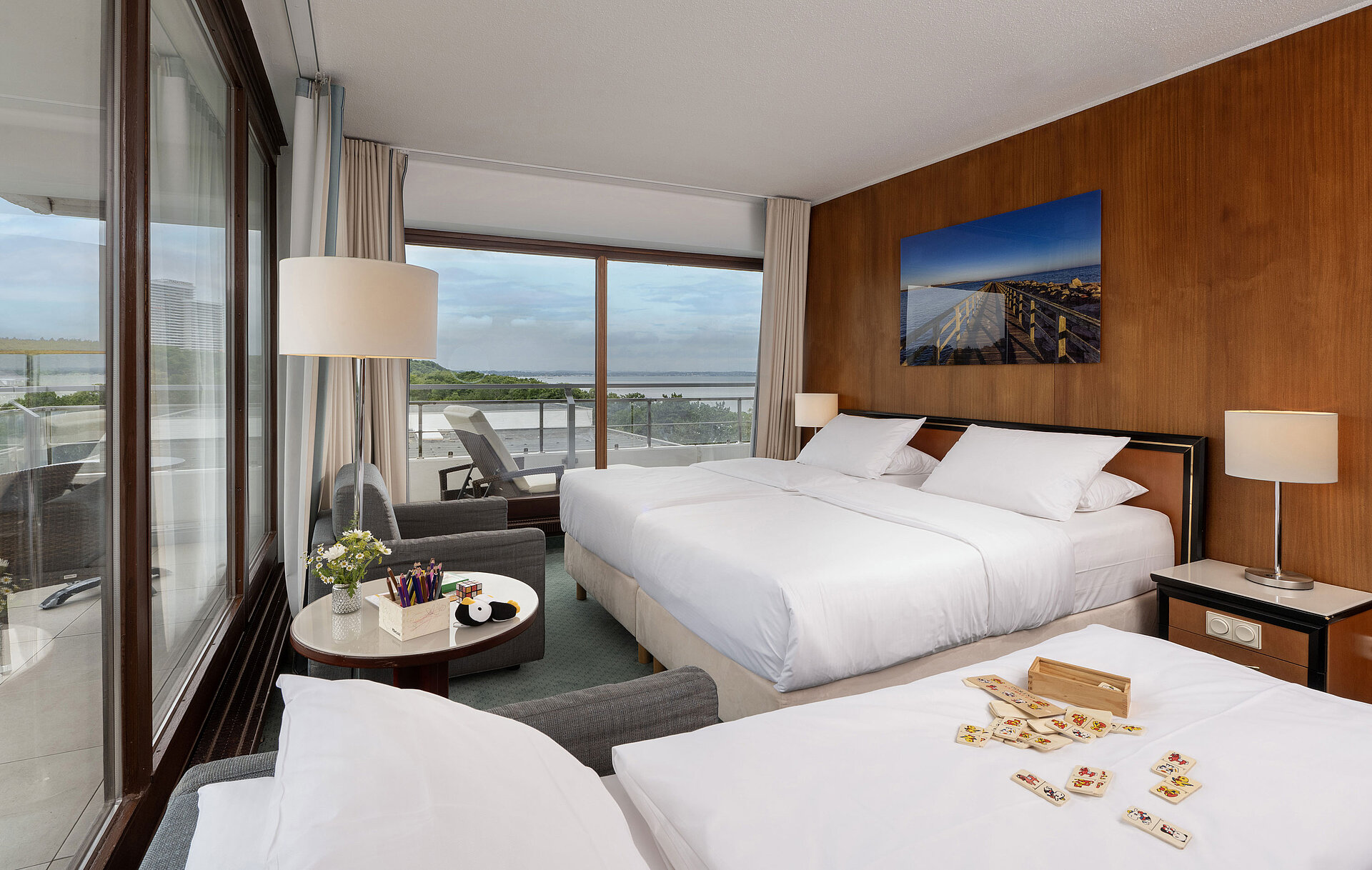 Näher kann man der Ostsee von einem Hotelzimmer aus nicht kommen, als vom Maritim Seehotel Timmendorfer Strand. Kein langes Laufen vom Strand bis zum Zimmer. Nach dem Badevergnügen im Meer oder den hoteleigenen Meerwasserpools mal eben unter die Dusche im eigenen Refugium huschen, ist da kein Problem. Wer Wert darauf legt, kann ab der Superior Kategorie sein Zimmer mit direktem Meerblick buchen. Und wenn wir Meerblick schreiben, dann meinen wir das auch so. Sie sitzen von Ihrem Balkon aus garantiert in erster Reihe und haben das Treiben am Strand im Blick. Aber auch bei den Zimmern zur Kurparkseite gibt es viel zu Sehen und zu Beobachten. Neben fantastischer Aussicht haben wir natürlich noch mehr im petto, was Sie in den ausführlichen Zimmerbeschreibungen unten nachlesen können. Zum Portfolio gehören auch Zimmer mit Verbindungstüren für alle die zu zweit anreisen, aber alleine schlafen möchten. Diese befinden sich auf der Kurparkseite auf den Etagen 2, 4, 6 und 8 und auf der Seeseite auf den Etagen 3, 5, 7 und 9.
