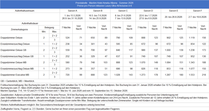 Preise und Reisezeiträume