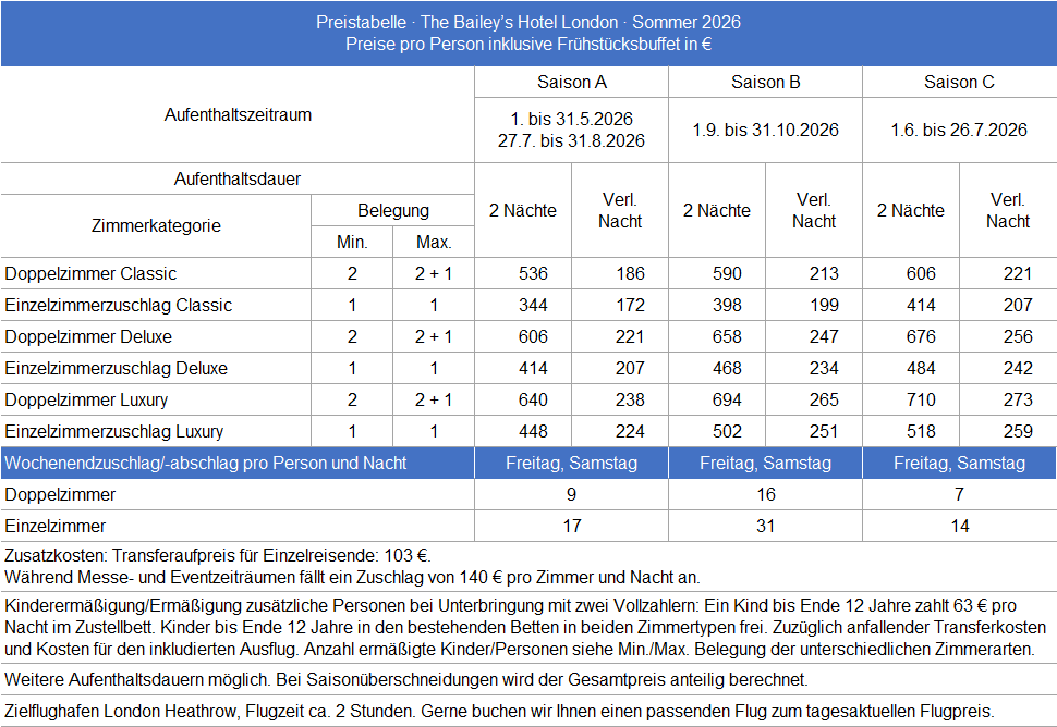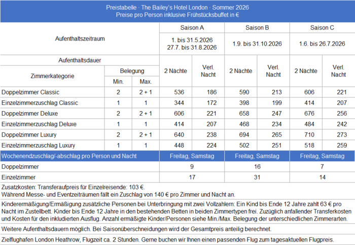Preise und Reisezeiträume
