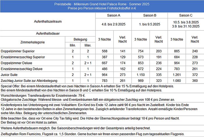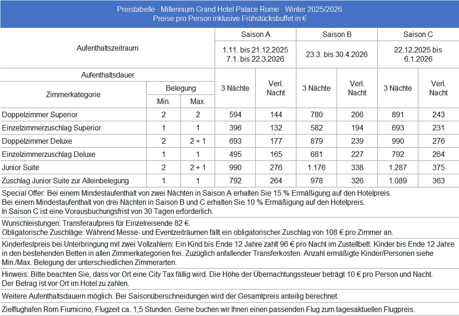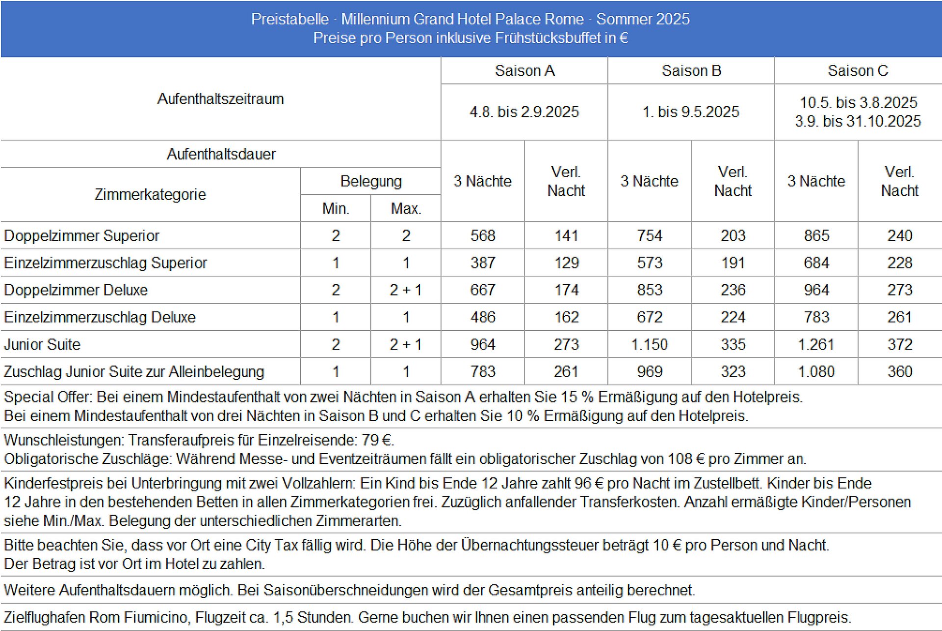 • Sammeltransfer Flughafen Rom-Fiumicino – Hotel – Flughafen Rom-Fiumicino