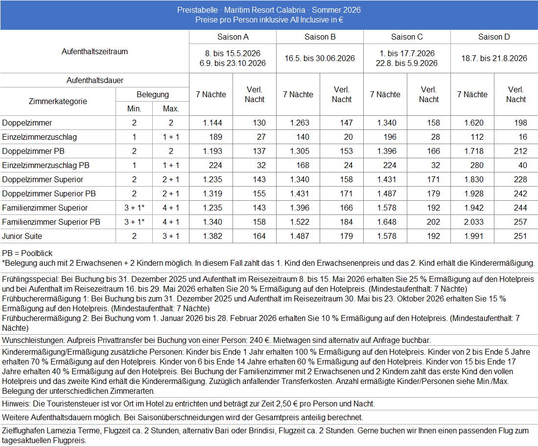 Die beschriebenen Leistungen sind nur bei Buchung über den Maritim Hotel-Reisedienst inkludiert. Bitte verwenden Sie für Ihre Buchungsanfrage das Anfrageformular am Ende dieser Seite. Bei Online-Buchung des Hotels sind diese Angebotsbestandteile nicht enthalten.
