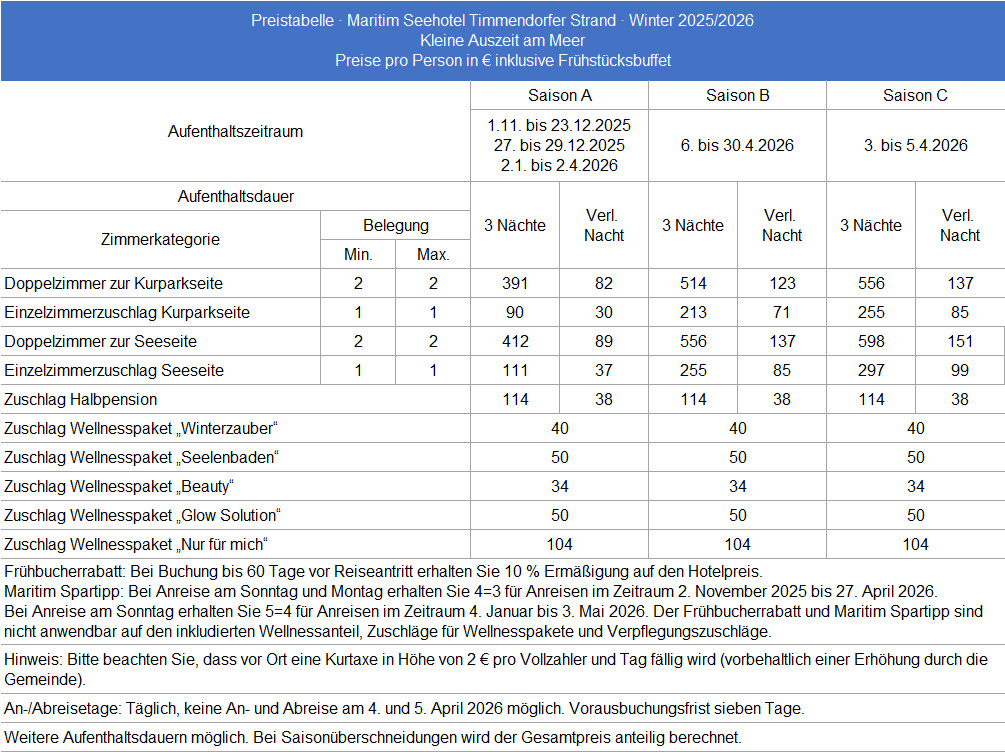 Wellnesspaket "Kleine Auszeit am Meer" ab 1. November 2025 (im 3-Nächte-Preis enthalten)