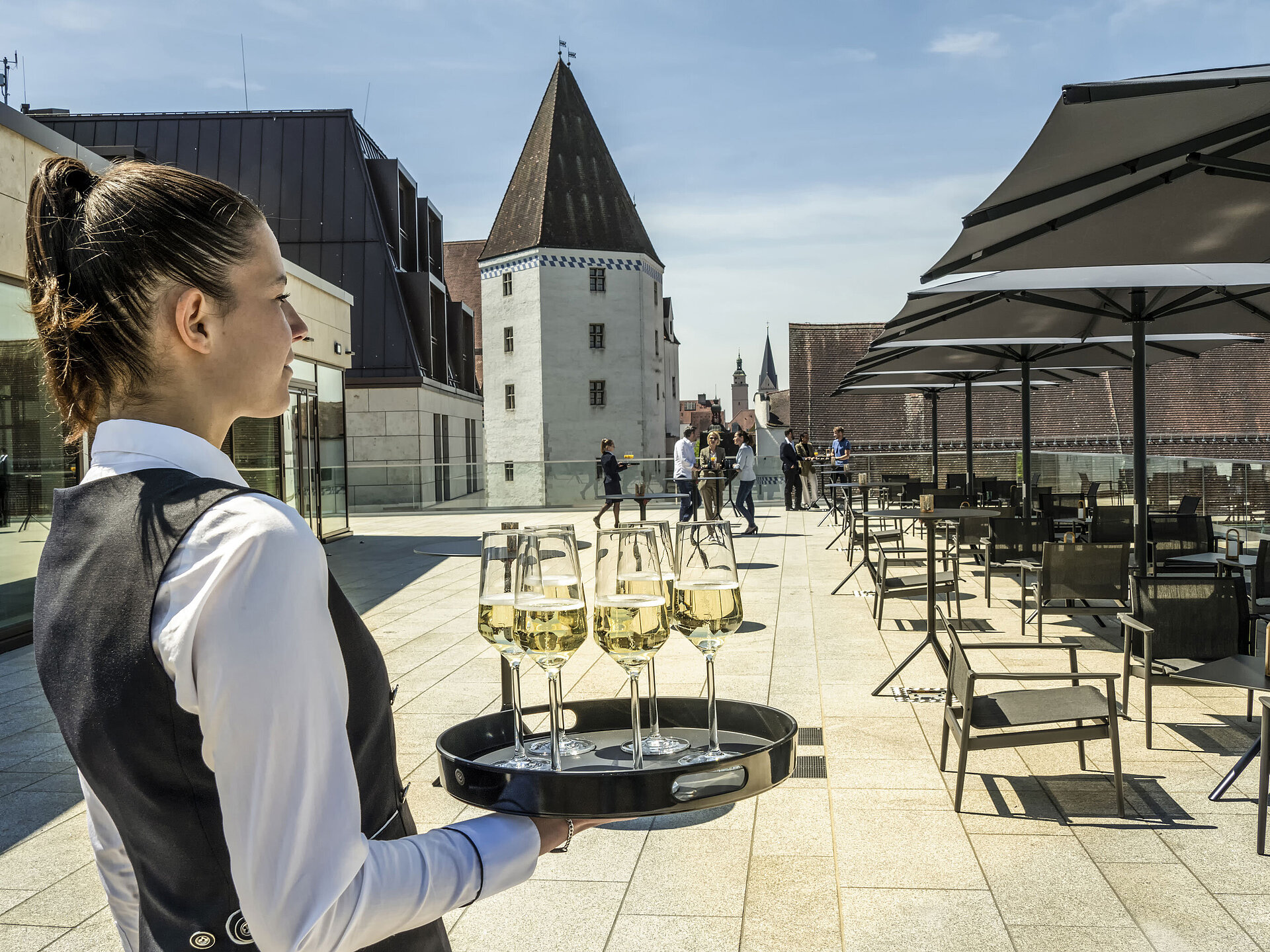 - Rooftop Terrasse auf der 4. Etage mit Schlossblick
